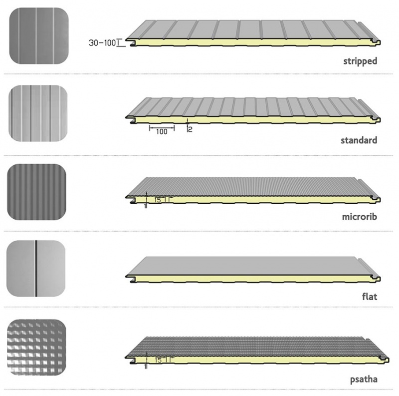 Θερμομονωτικό πάνελ πολύουρεθάνης πλαγιοκάλλυψης. Είναι κατάλληλο για αποθήκες,